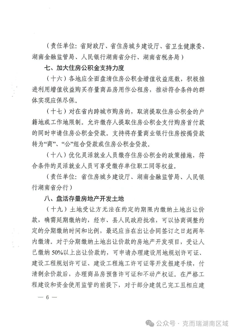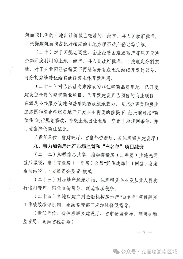 6、“湘十条”还就在城中村改造、城市更新和城市危旧房改造中优先实施货币化安置,盘活存量房地产开发土地,推进“好房子”建设等事项进行了明确。