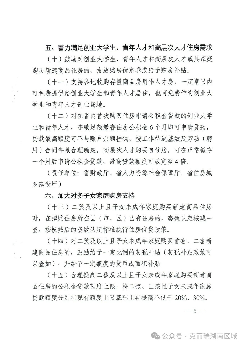 政策点评:“湘十条” 对二孩及以上且子女未成年家庭,核减住房套数认定,给予契税、货币或面积补贴,并提高公积金贷款额度上限,切实减轻多子女家庭购房压力。